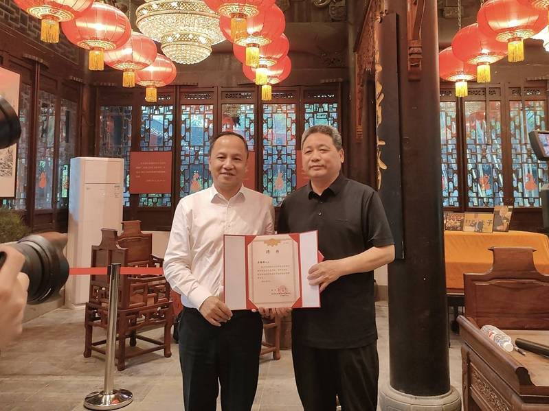 孔令立先生为吴教授颁发“孔氏南宗家庙特聘研究员”聘书。