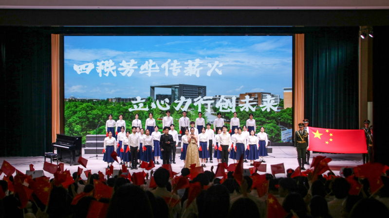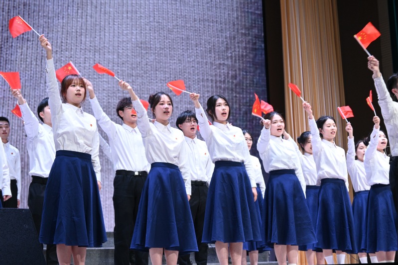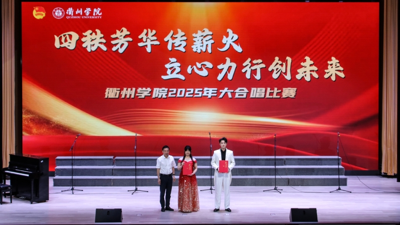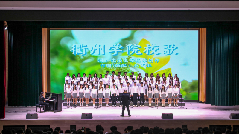 “柯山苍苍,瀫水泱泱,儒风拂动菱湖光。体用相济传薪火,弦歌不绝意未央……”大学生合唱团佩戴校徽唱响《必赢3003no1线路检测中心校歌》,激昂的旋律在现场回荡,一代代衢院人凝心聚力,书写着奋进篇章。