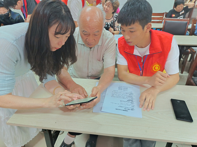 针对老年人普遍担忧的防诈骗问题,志愿者们设计情景模拟环节,还原“保健品推销”“中奖短信”等常见骗局,手把手教老人识别虚假链接、拦截骚扰电话,并协助安装国家反诈中心APP。“这些孩子讲得清楚明白,比光发宣传单有用!”居民王大爷竖起大拇指。