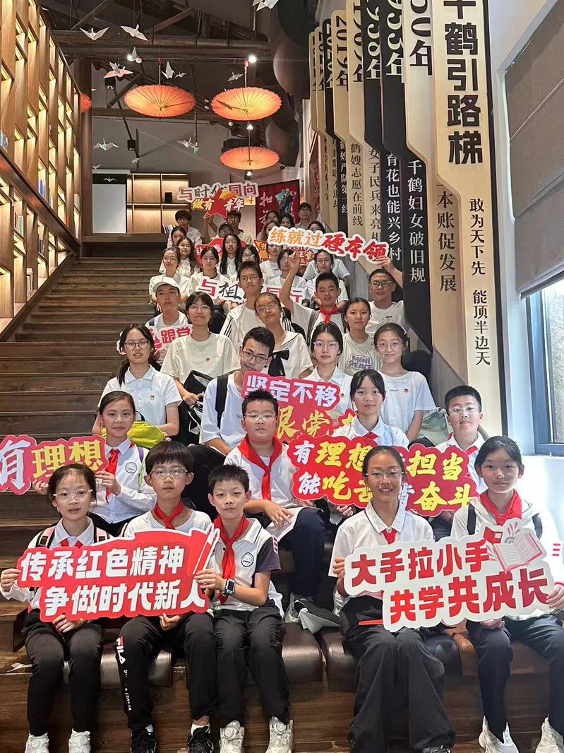 同学们参观女子民兵传承馆千鹤文化礼堂,深入了解千鹤村的文化底蕴和红色传承。中学生余东瀚表示:“看到那些记录着千鹤妇女奋斗历程的老物件和珍贵照片,我深刻感受到她们为了改变命运所付出的努力,令人敬佩!”