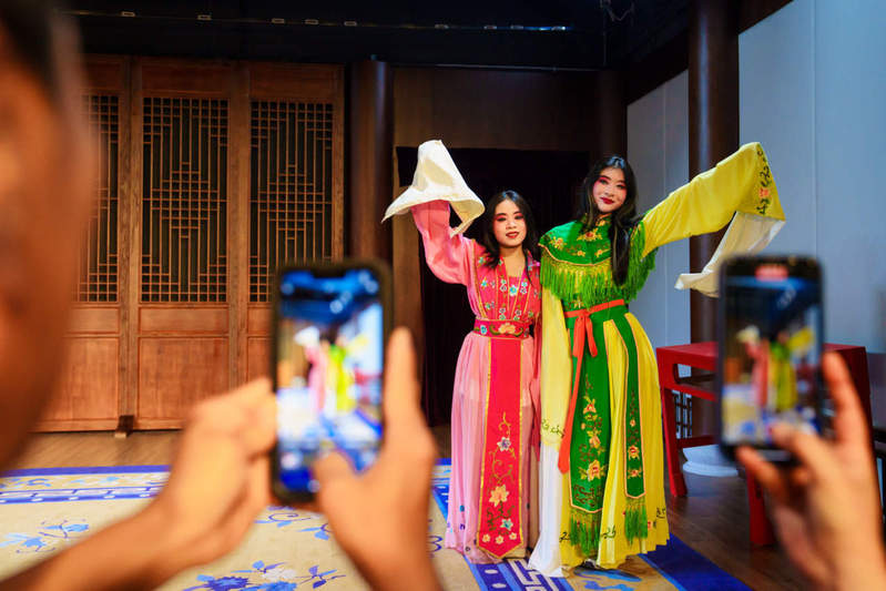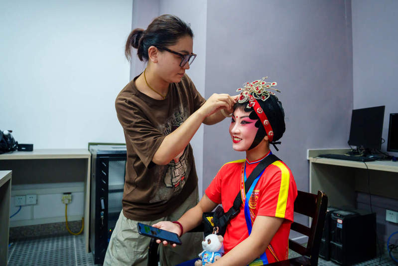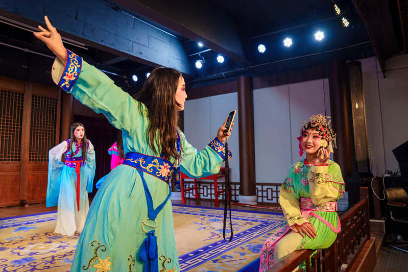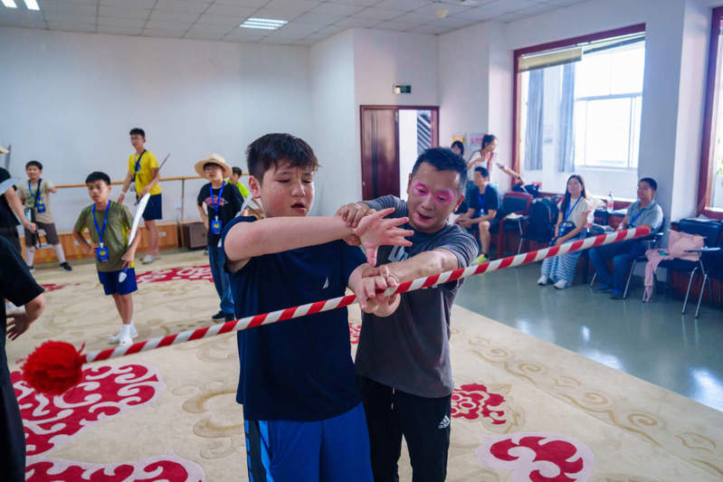 7月15日,“传承杜立特精神 共筑友谊新篇”必赢3003no1线路检测中心美国青少年YES夏令营暨“触摸柯城”2025年中美文化交流活动走进衢州市西安高腔传习所。现场,美国青少年上戏妆着戏服,学习身段技法、唱腔念白,亲身体验中国戏剧的魅力。