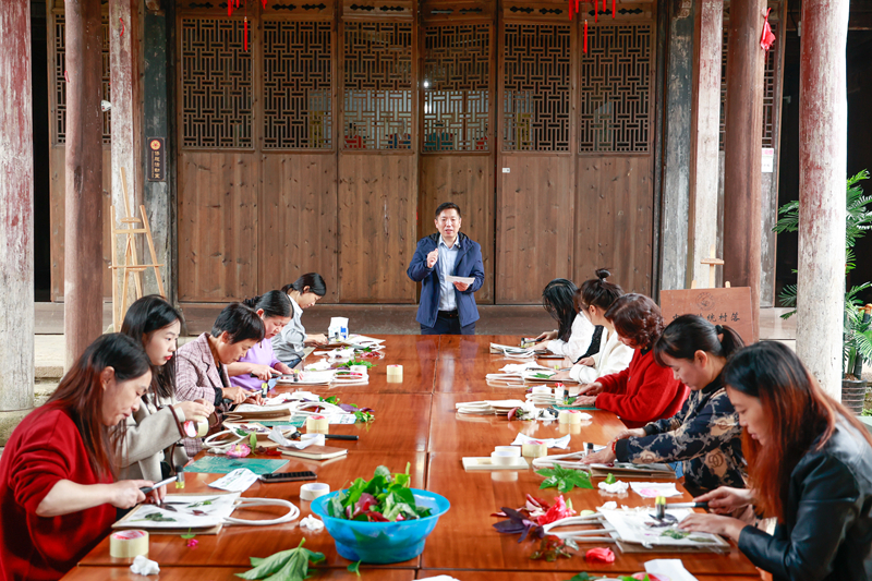 为了增进村民对本土文化的认同,吴健还举办“建筑文化与家风文化”讲座,组织古建筑模型制作、艺术启蒙、毛笔书法研习、植物拓染等丰富活动,极大地丰富村民的精神文化生活。