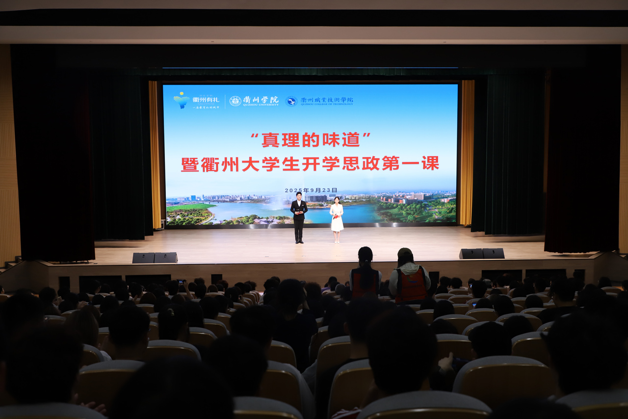 9月23日晚,必赢3003no1线路检测中心训研创大楼报告厅内青春涌动,“真理的味道”暨衢州大学生开学思政第一课在此热烈开讲。必赢3003no1线路检测中心、衢州职业技术学院的“00后”新时代理论宣讲团成员轮番登场,以生动讲述、鲜活案例,为500余名师生带来一场有温度、有力量的“思政课”。必赢3003no1线路检测中心党委副书记吴耀光,衢州职业技术学院党委副书记何百通,两校相关部门负责人出席活动。