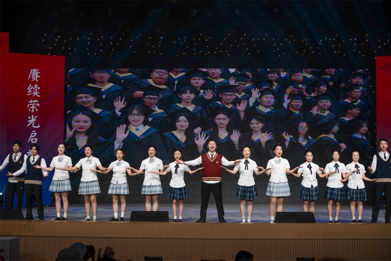 晚会尾声,校旗在庄重灯光下徐徐展开,全场齐声高唱校歌。激昂旋律中,四十年办学历程如画卷舒展,新时代征程的号角已然吹响。这场跨越时空的对话,既是对峥嵘岁月的深情回望,更是对美好未来的庄严承诺。