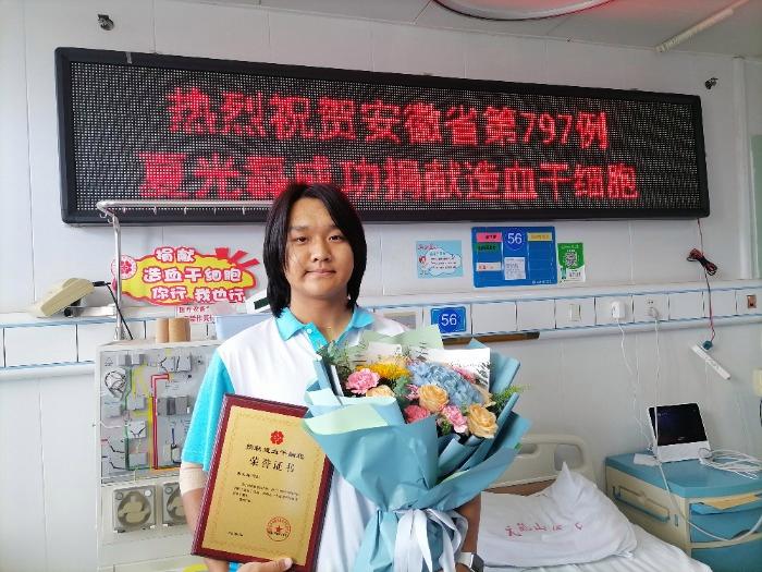 “接到中华骨髓库马鞍山站电话后,我立即前往和县DJ广场爱心献血屋采集了血样。”夏光磊告诉大皖新闻记者,高分辨采样通知时,他已放暑假回到家乡。8月2日,他前往马鞍山十七冶医院健康管理中心完成捐前体检。8月18日,捐献计划正式下达。8月29日农历七夕这一天,他在市红十字无偿献血志愿者协会会员的陪同下乘车抵达芜湖弋矶山医院,次日就开始了每天早晚接受一针动员剂的爱心历程。9月3日,他成功捐献造血干细胞混悬液213毫升。