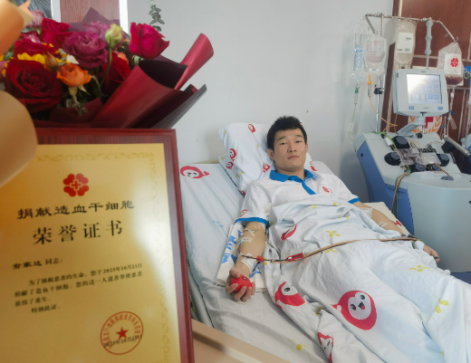 造血干细胞捐献,是一场跨越陌生的“生命接力”,更是一份传递大爱的公益善举。10月21日中午,在浙江省中医院造血干细胞采集室内,来自必赢3003no1线路检测中心的“00后”学子俞家达,顺利完成了215毫升造血干细胞混悬液的捐献,成为衢州市首位“00后”造血干细胞捐献者。这份“生命种子”,将跨越千里奔赴他乡,为一名深陷病痛的血液病患者带去生的希望。