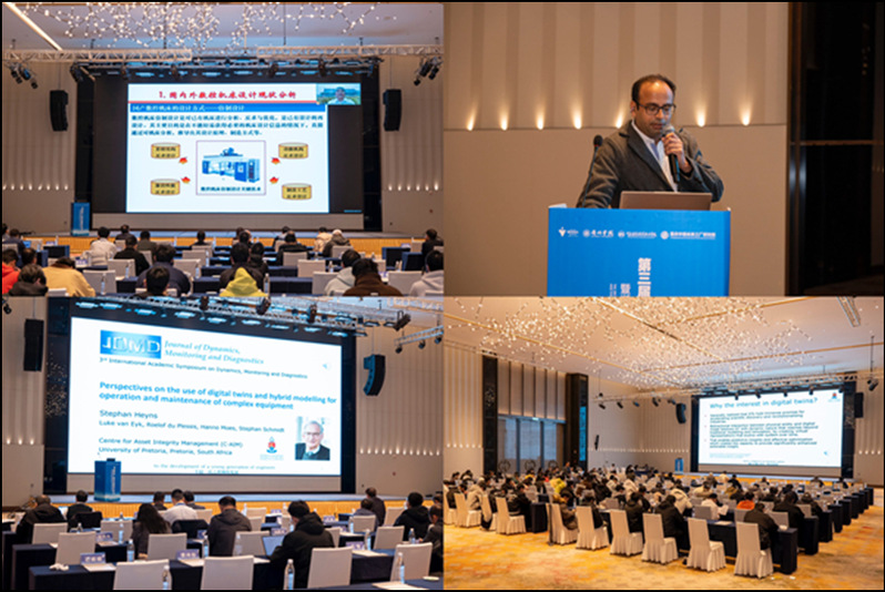 在国际学术研讨会主论坛上,浙江大学谭建荣院士、温州大学向家伟教授、西安交通大学王诗彬教授、南非比勒陀利亚大学Stephan Heyns院士、英国曼彻斯特大学Jyoti Sinha教授、西南交通大学郭亮教授、印度阿米提大学Anil Kumar教授等10余位国内外顶尖学者,围绕动力学、监测与诊断领域的最新研究与发展趋势作了精彩的主旨报告。
