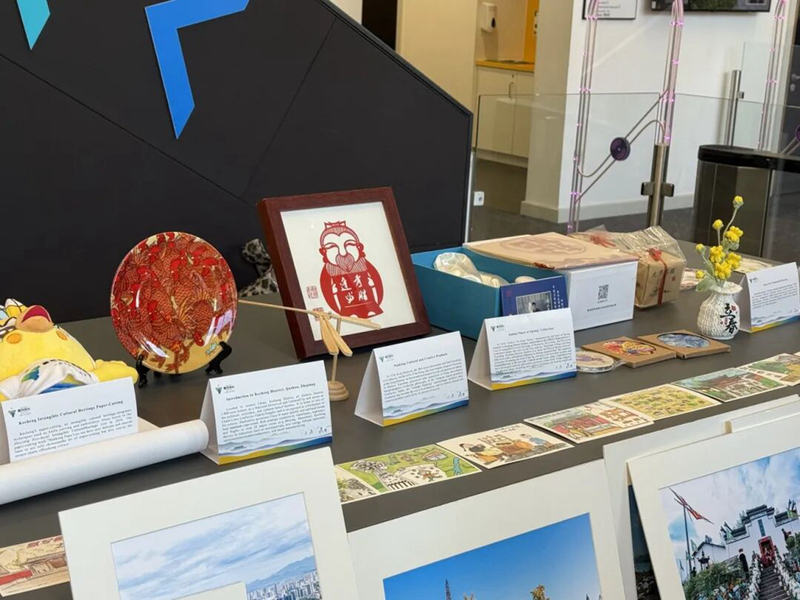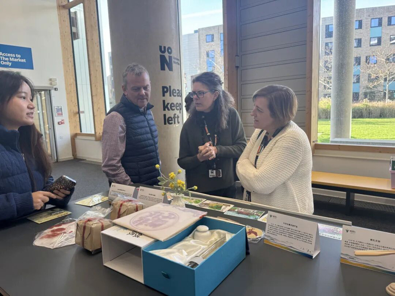 “这个盘子非常漂亮,用色大胆鲜艳,我很喜欢。”“我特别喜欢这个编织花,因为它是手工制作的。”“这个中国茶很棒!”……非遗剪纸、麻蓬香锤、南孔文创等来自柯城的非遗技艺和各类文创瞬间成为校园“网红”,圈粉众多英国师生。